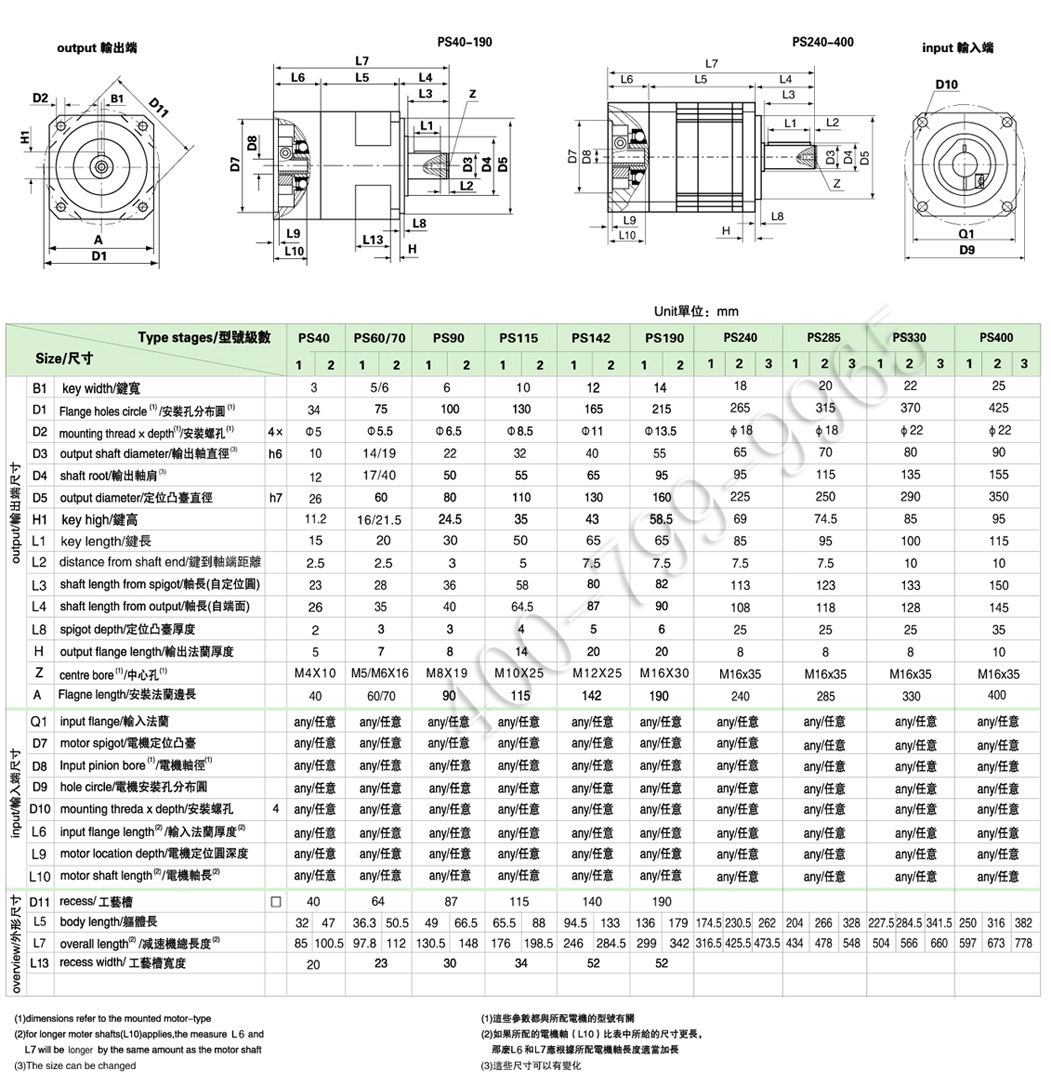 外形尺寸:40mm---400mm