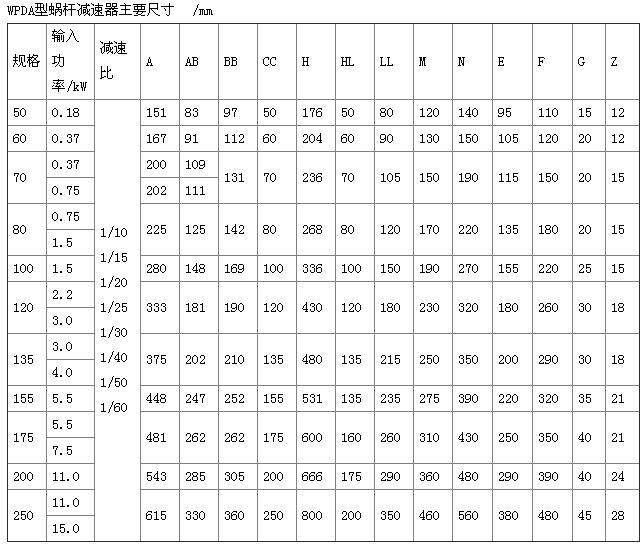 WPDA單級蝸輪蝸桿減速機