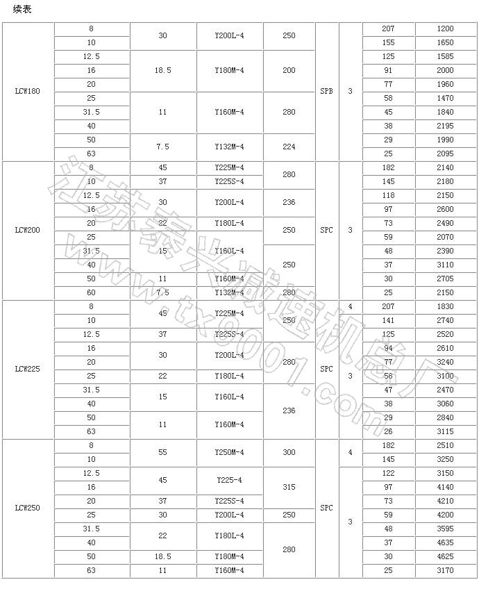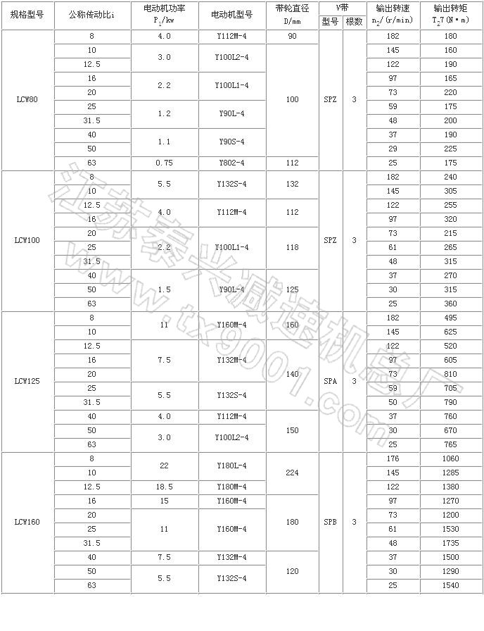 LCW型立式圓弧圓柱蝸桿減速器性能參數(shù)(JB/T7848-1995)