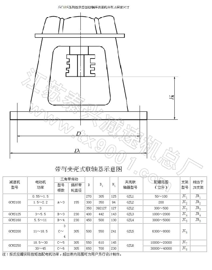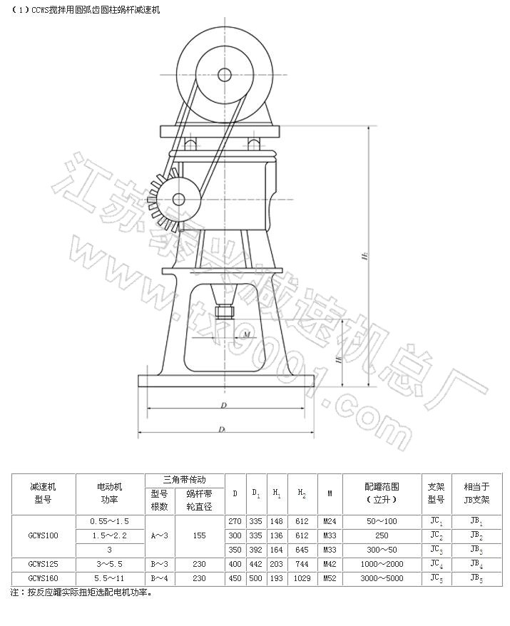 GCWS系列蝸桿減速機采用了軸截面為圓弧形的圓柱蝸桿,蝸輪齒形為與蝸桿相共軛的圓弧,故凸凹嚙合。具有性能可靠,承載能力強,體積小,噪聲低, 運轉(zhuǎn)平穩(wěn),效率高,密封好等優(yōu)點。主要配套安裝于化工、制藥、造紙、釀酒等容器上作傳動攪拌用。特別與搪玻璃反應(yīng)罐配套安裝,由于設(shè)計采用了直徑較大的蝸 輪軸,并加長了該軸的兩上軸承支撐點距離,改變了原來靠通用支架聯(lián)接三軸一體的傳動攪拌形式為減速機與攪拌器直聯(lián)一體的傳動攪拌形式。從而比同類產(chǎn)品體積 小1/3,承載能力強0.5-1.5倍,傳動效率提高10%-20%。