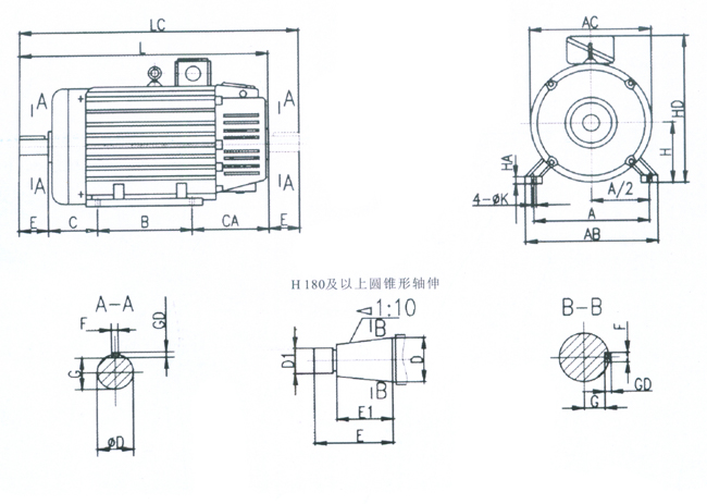 三、YZR,450-475技術(shù)參數(shù)及安裝與外形尺寸