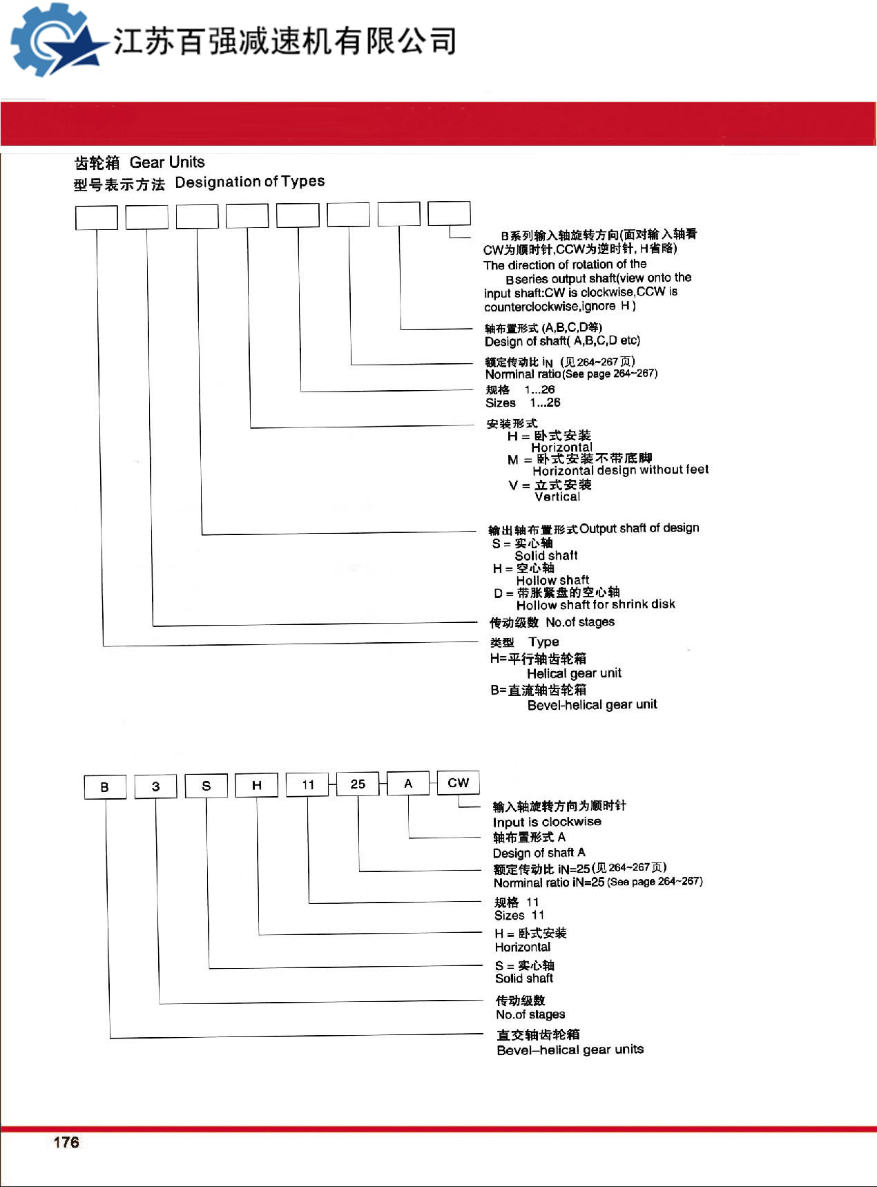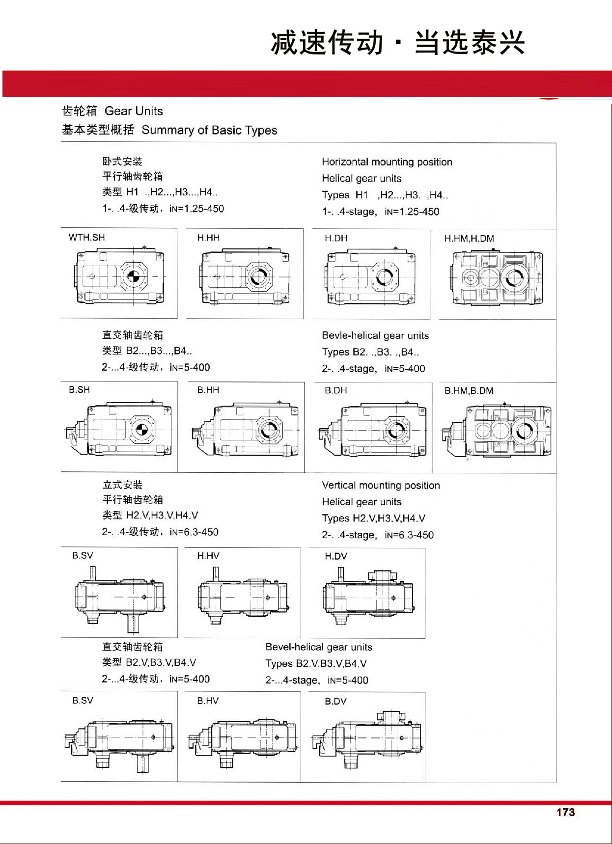 7、 H、B系列產(chǎn)品有3~26型規(guī)格,減速傳動(dòng)級(jí)數(shù)有1~4級(jí),速比1.25~450。